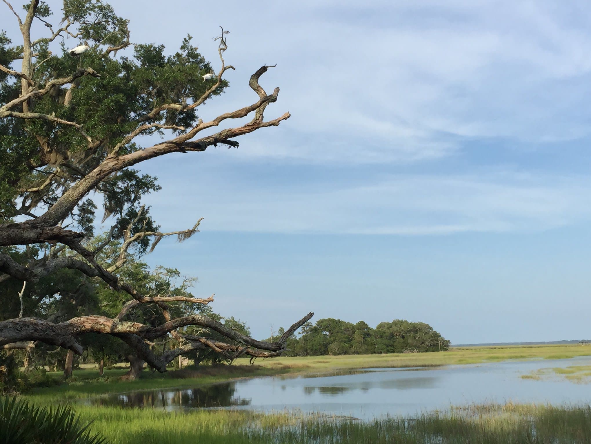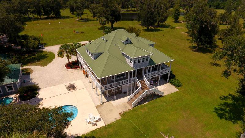 Hudson Creek Lodge overlooks the marshes of Hudson Creek, Tolomato Island and, in the distance, Sapelo Island. It is a serene location to host the rehearsal and dinner, hair and makeup appointments, and wedding and reception without leaving the premises.