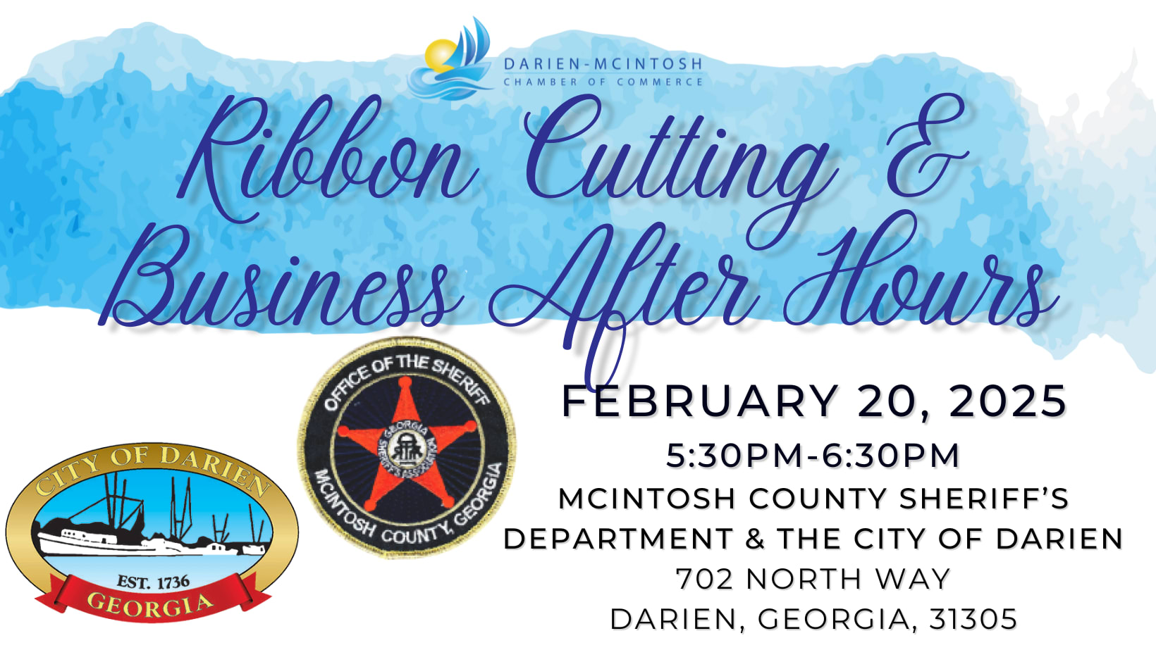 Join us for the Ribbon Cutting of the Darien Precinct and Business After Hours with the McIntosh Sheriff's Office and the City of Darien. Business After Hours is a great way to connect with community members and business leaders.